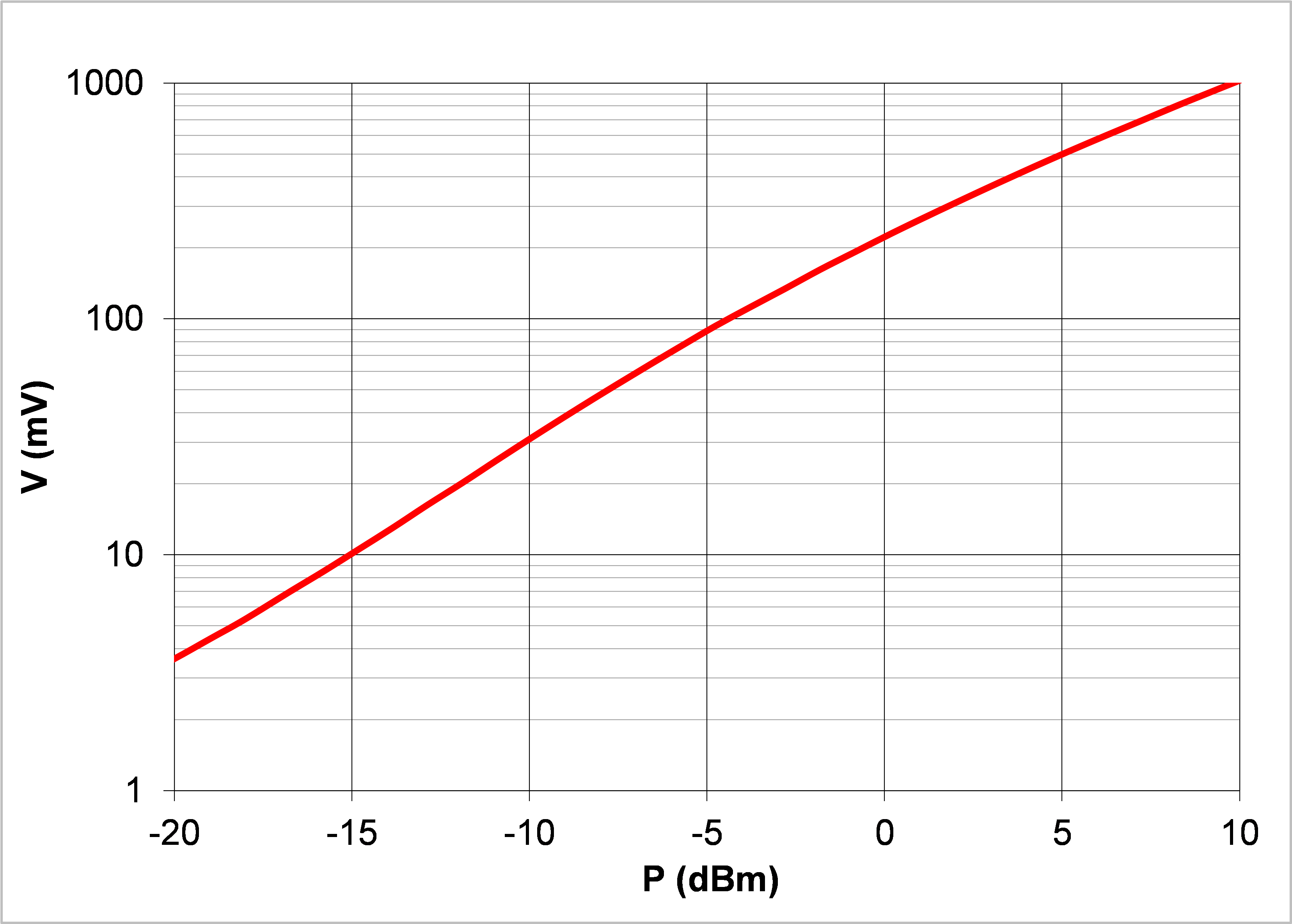 The detector delivers well-scaled DC voltage as a function of incident microwave power.